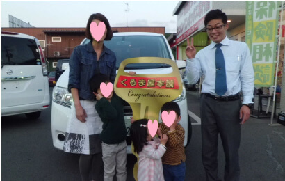 ネットで車を見た時、全体的に年数がたってなくて質が良い車が多いと思いました。実際に車を見させていただくと、とても分かりやすく説明してもらい、キズのあるところ、修理したら値段がどれくらいになるなど、細かく教えてもらい、とても参考になりました。主人も私も車を購入するにあたって、何を基準に考えてら良いか分からなかっていませんでしたが、それでも、お話をしていくうちに、良い車に巡り合えたと思います。